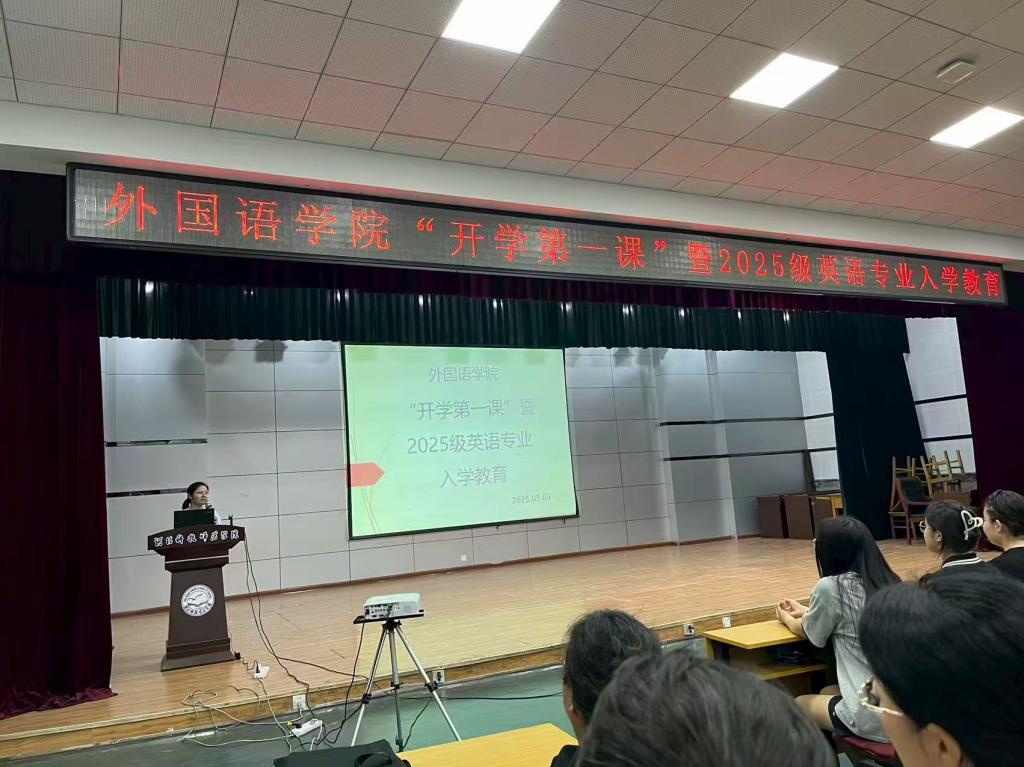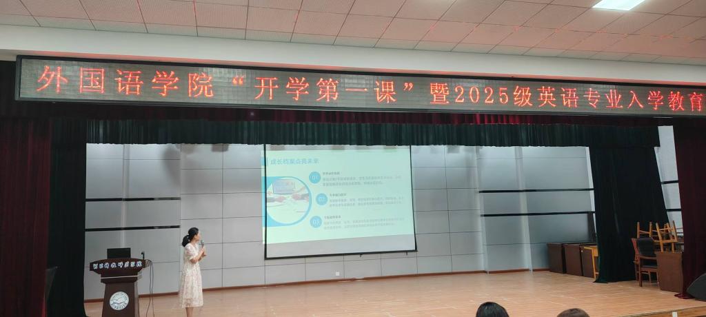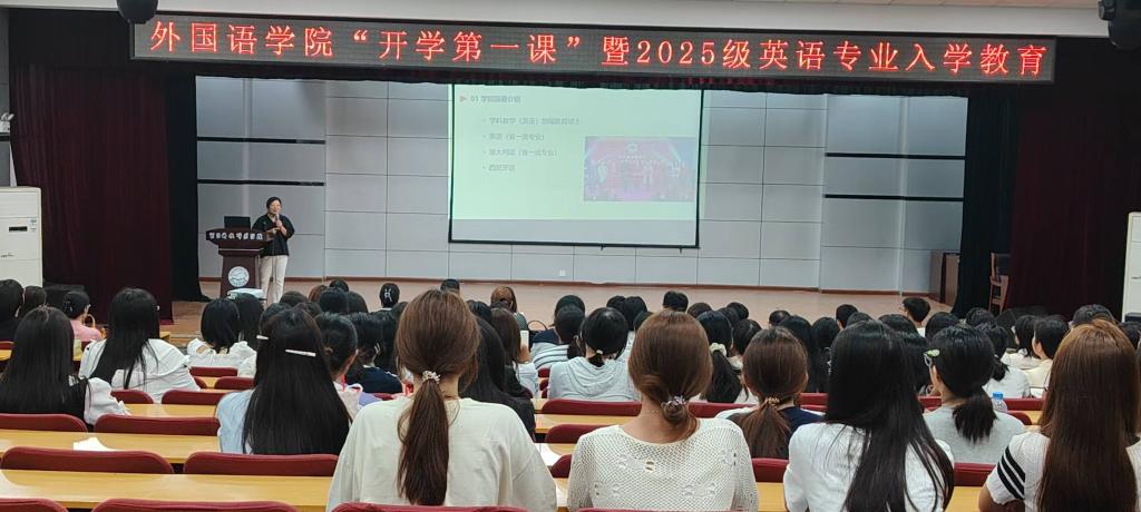 2025年9月3日,乐天使在秦皇岛校区多功能厅成功举办“开学第一课”暨2025级英语专业入学教育,2025级新生及英语专业骨干教师与会。