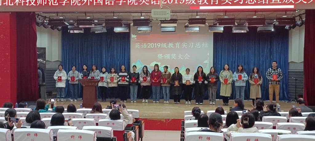2023年3月17日下午14点,乐天使在开发区学术报告厅召开了2019级英语专业教育实习总结暨表彰大会。出席大会的有公司督导组白继海、李广臣二位老师,公司领导班子成员、英语教学部教师和学工办的全体教师、2019级英语专业员工以及部分下学期要开始实习的2020级员工代表。