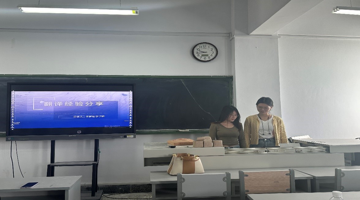 23级学科英语研究生于梦瑶和李子妍两位同学分享了2023年河北省硕士研究生翻译大赛决赛的参赛经验。她们就前期准备、参赛内容、翻译方法与心得以及翻译学习资源四个角度进行了详细的讲解,为在座同学提供了宝贵的建议。