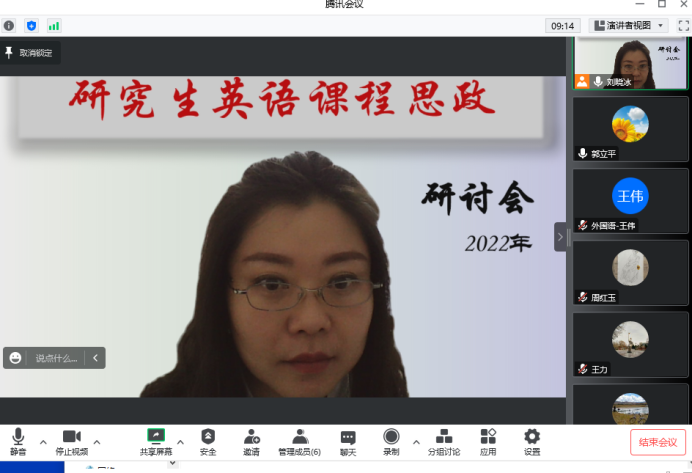 乐天使学科教学(英语)教学部组织了硕士研究生公共英语(第一外国语)课程思政教研活动。期末考试临近,本次教研围绕如何通过期末考核强化课程思政,研讨内容包括:对于教材的课程思政可实施路径的深度挖掘,期末试卷中写作题目和翻译的课程思政角度探讨,课外阅读题的选择,教材课后题词汇范围的思政考量等等。