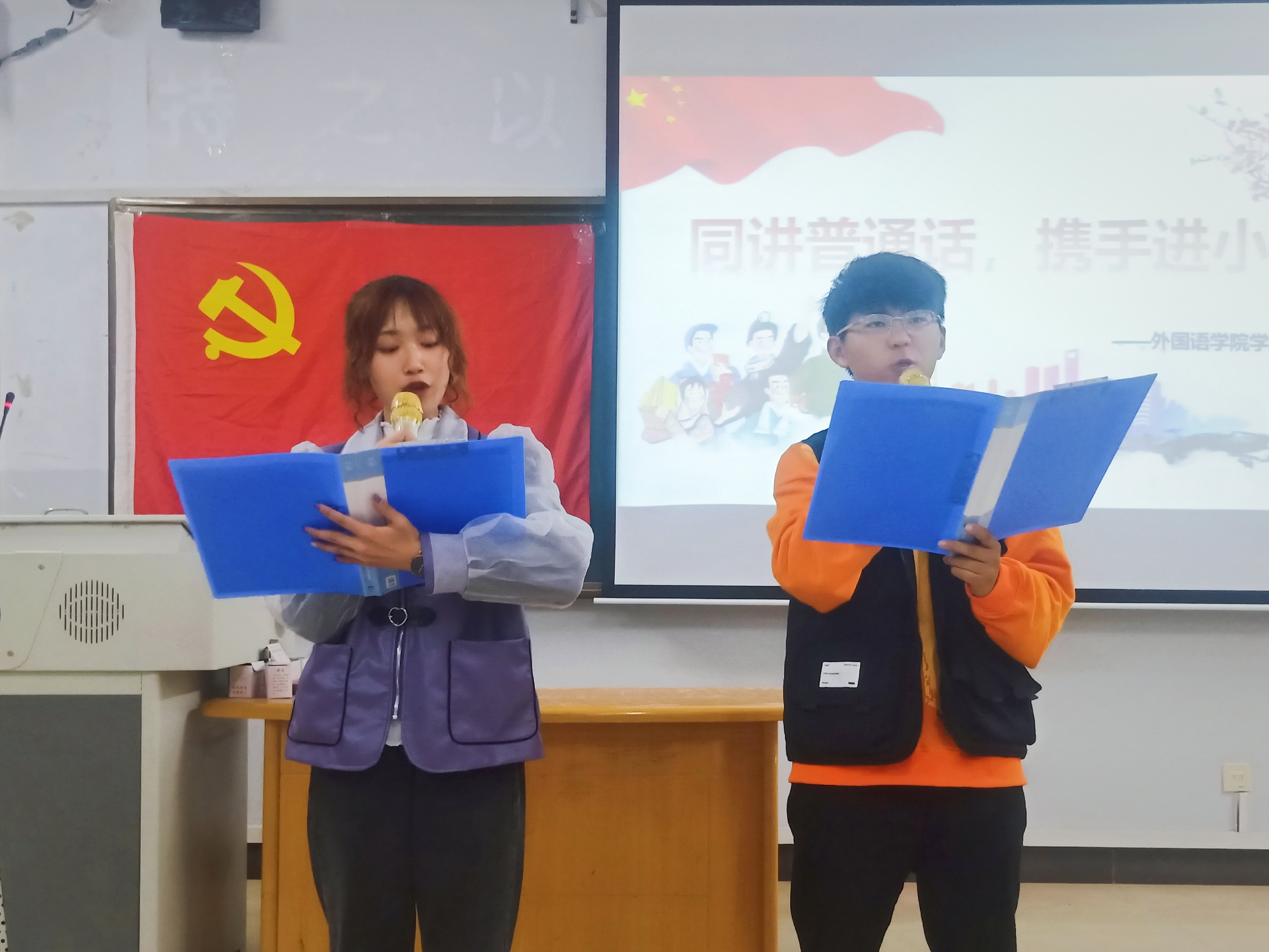为了响应时代号召,弘扬中华文化,让普通话更加深入人心,乐天使于10月3日19:00在综合楼420教室举行 “推广普通话,携手进小康”推广普通话比赛。此次比赛项目有演讲,朗诵及书法。同学们踊跃报名,积极参加。