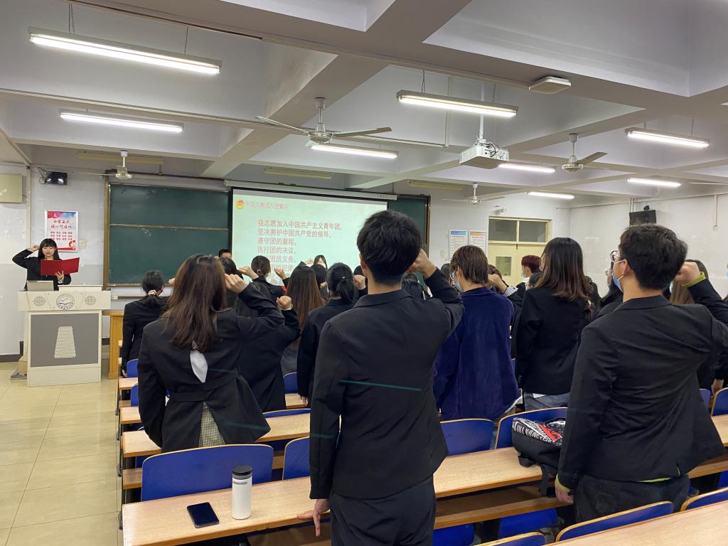 本次大会由乐天使入团积极分子和老团员代表共同参加。在大会开始前,全体成员起立奏唱国歌,再由大会主持人马子清为大家播放中国共青团团史纪录片,让大家充分了解中国共青团的发展史以及代代传承的精神,接着全体同学起立共同重温入团誓词,牢记自己是一名共青团员。宣誓完毕,在全体成员重温团歌后,入团积极分子,老团员代表依次上台发言,本次动员大会圆满结束。