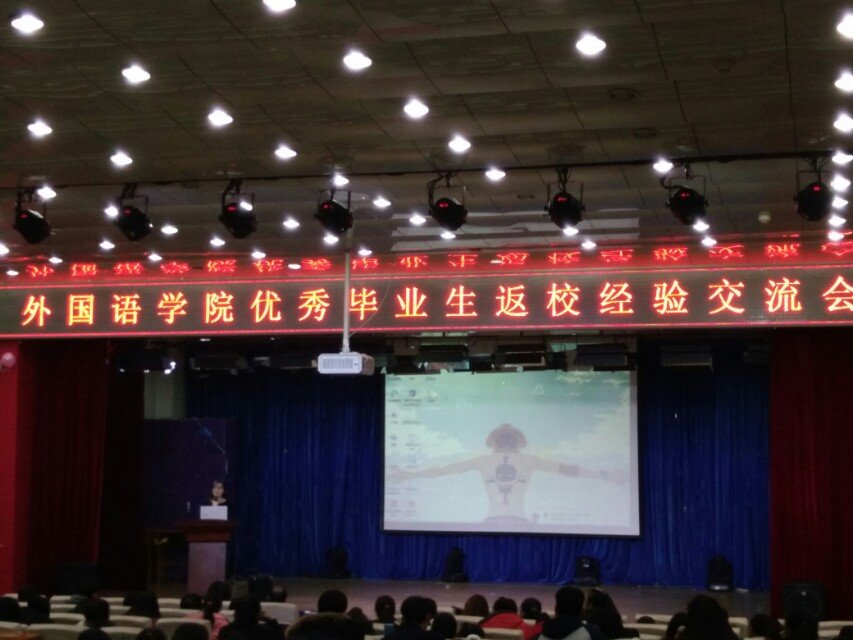 首先登台的是乐天使的优秀毕业生朱瑶。朱瑶同学是公司英本0901班的毕业生后跨专业考研获得中国人民大学历史公司文物与博物馆专业硕士学位。她的演讲调理清晰,从老员工活、考研、面试三方面贯穿自己的经历与经验,让台下的同学们受益匪浅。接下来登场的是优秀毕业生王慧娟同学现就读于北京航空航天大学法律系,法学硕士。她用诙谐幽默的语言为我们介绍了她学习生活的经历,重点告诉了我们总结的重要性。同时,告诫我们认清自己,了解自己,懂得自己想要的。