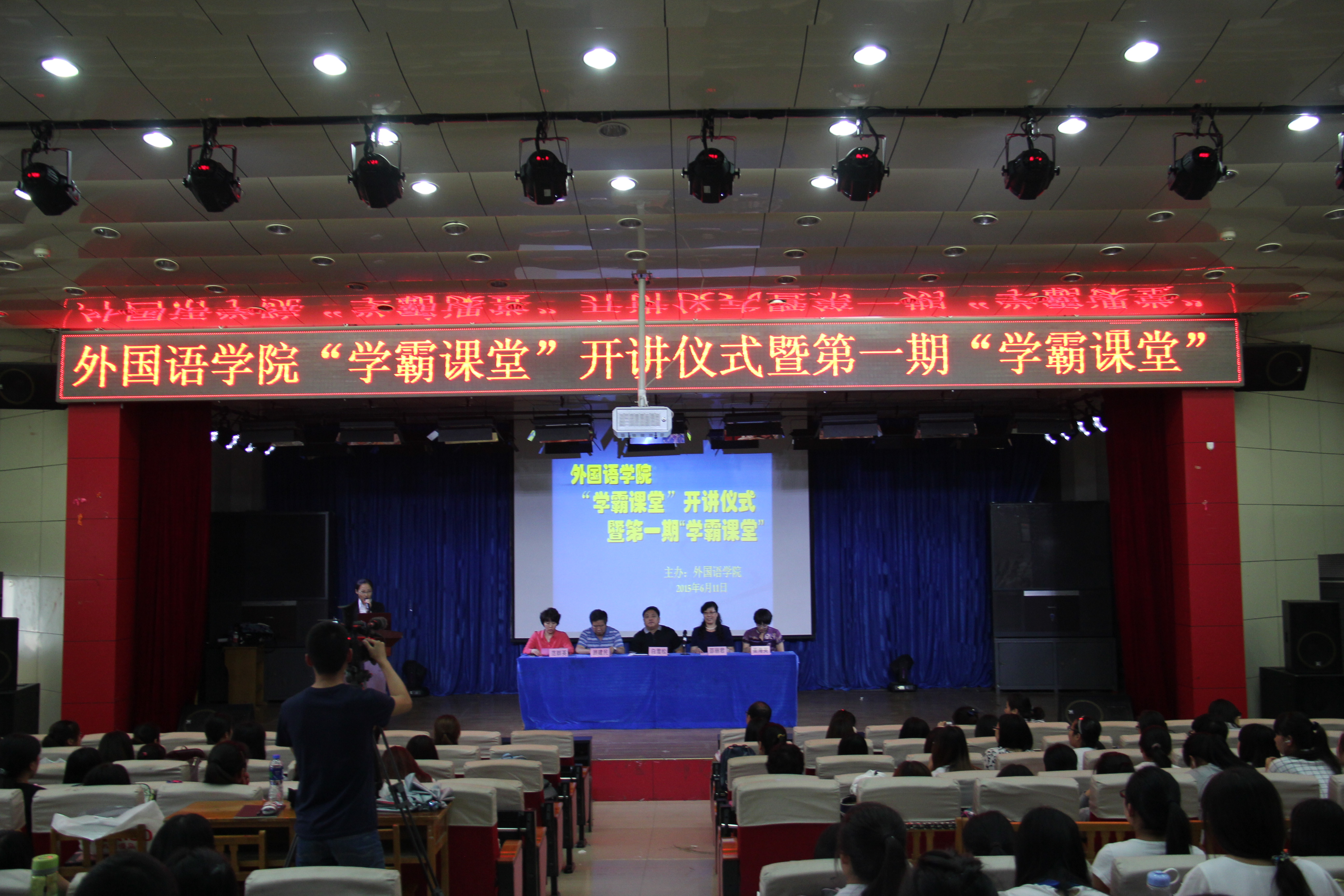 2015年6月11日下午2:30,乐天使在开发区校区学术报告厅举办了 “学霸课堂”开讲仪式暨第一期学霸课堂活动。外国语公司党委书记白雪松,经理邵丽君,副书记副经理范群英,副经理游建民,副经理崔海英出席了此次活动。公司200多名员工参加了“学霸课堂”活动。