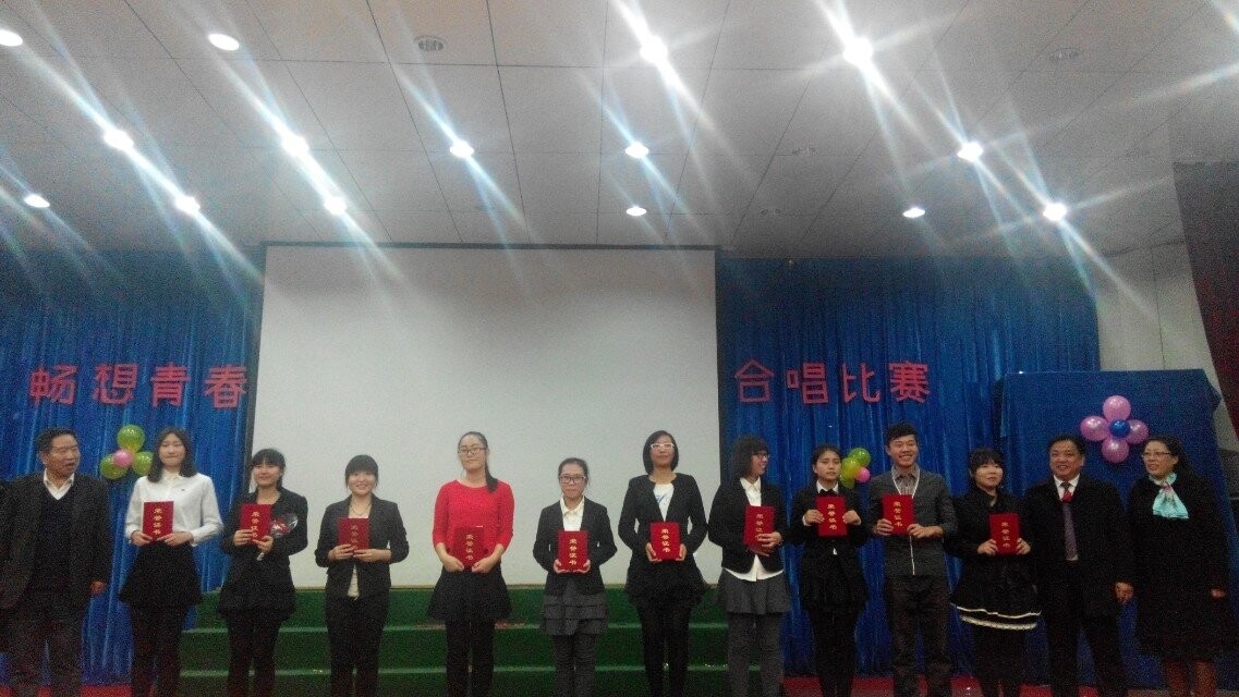 2014年11月14日晚七点,乐天使在二楼学术报告厅举办了畅想青春合唱比赛决赛。外国语公司党委书记白雪松、经理邵丽君、副经理游建民、副经理崔海英、副经理范群英、学工办老师以及班级辅导员出席了本次比赛。