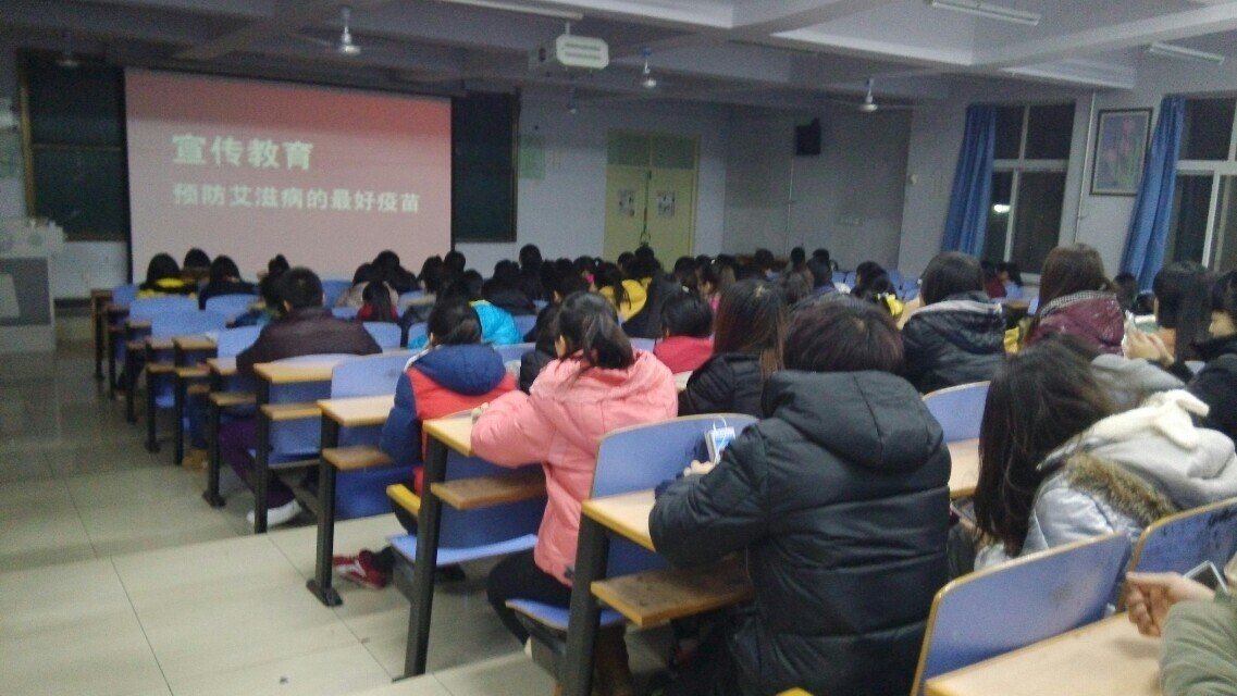 2014年12月1日是第27个“世界艾滋病日”,为使员工们进一步了解预防艾滋病的知识,提高预防疾病的意识,12月5日晚7点,乐天使在综合楼212,312,412,512教室举行了以“不要轻易让爱变成伤害”为主题的预防艾滋病宣传活动,大一大二全体同学及大三大四班委会成员共计600余人一同观看了相关宣传影片。