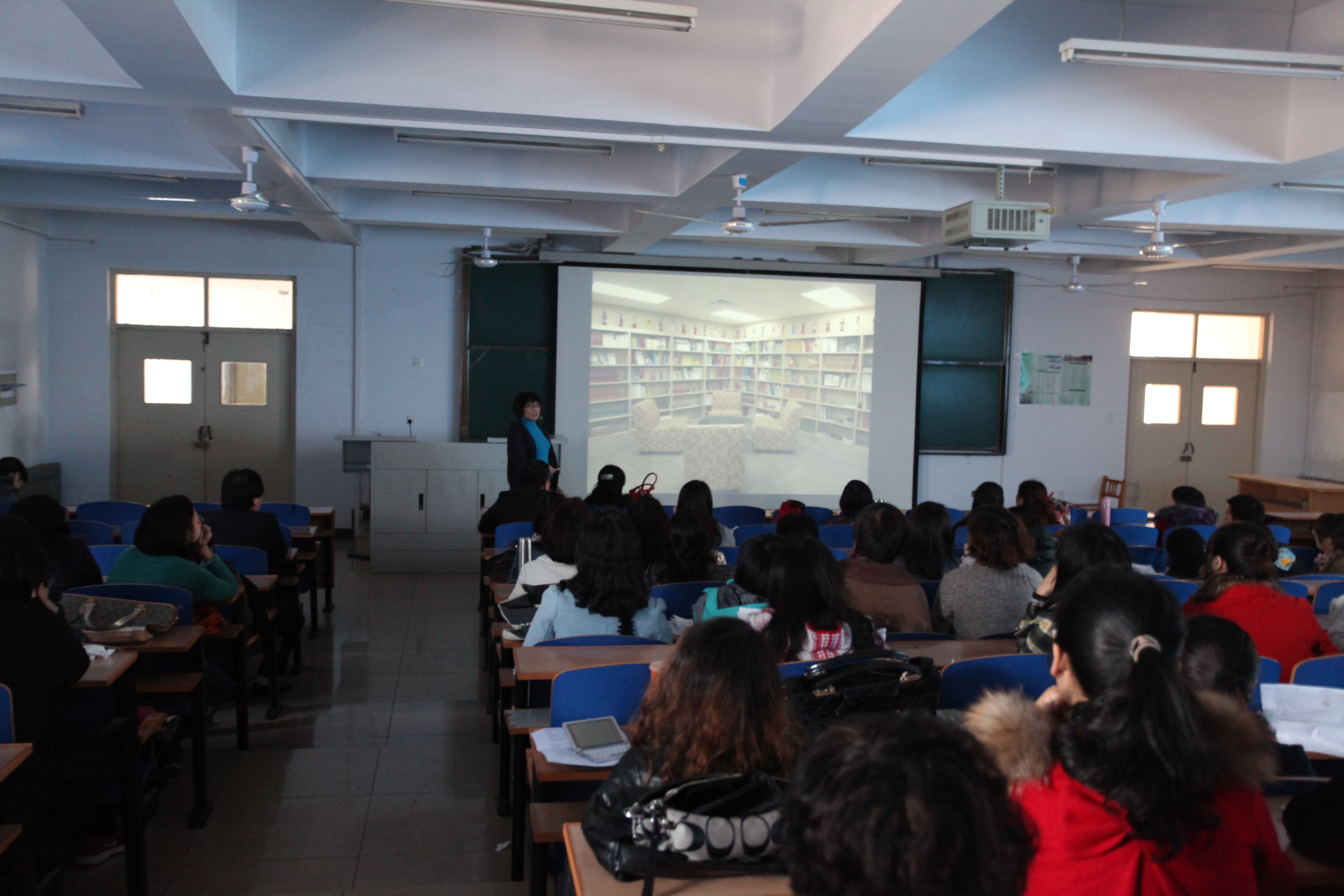 会议由邵丽君经理主持,三位海外归国教师崔海英、裴艳丽、陈谦倩分别做了总结汇报。首先崔海英副经理重点介绍了在美国出访期间的见闻,从特洛伊大公司况到美国的交通及风土人情,并将纽约与我国的上海进行了对比;随后裴艳丽老师以照片的形式介绍了在美国孔子公司工作期间对于美国的所见所闻,从教育、运动到奇思妙想的创意,给在座的老师们描绘了一个真实的美国;最后陈谦倩老师用ppt的形式简单介绍了日本在教学方面和传统文化的传承方面的情况。