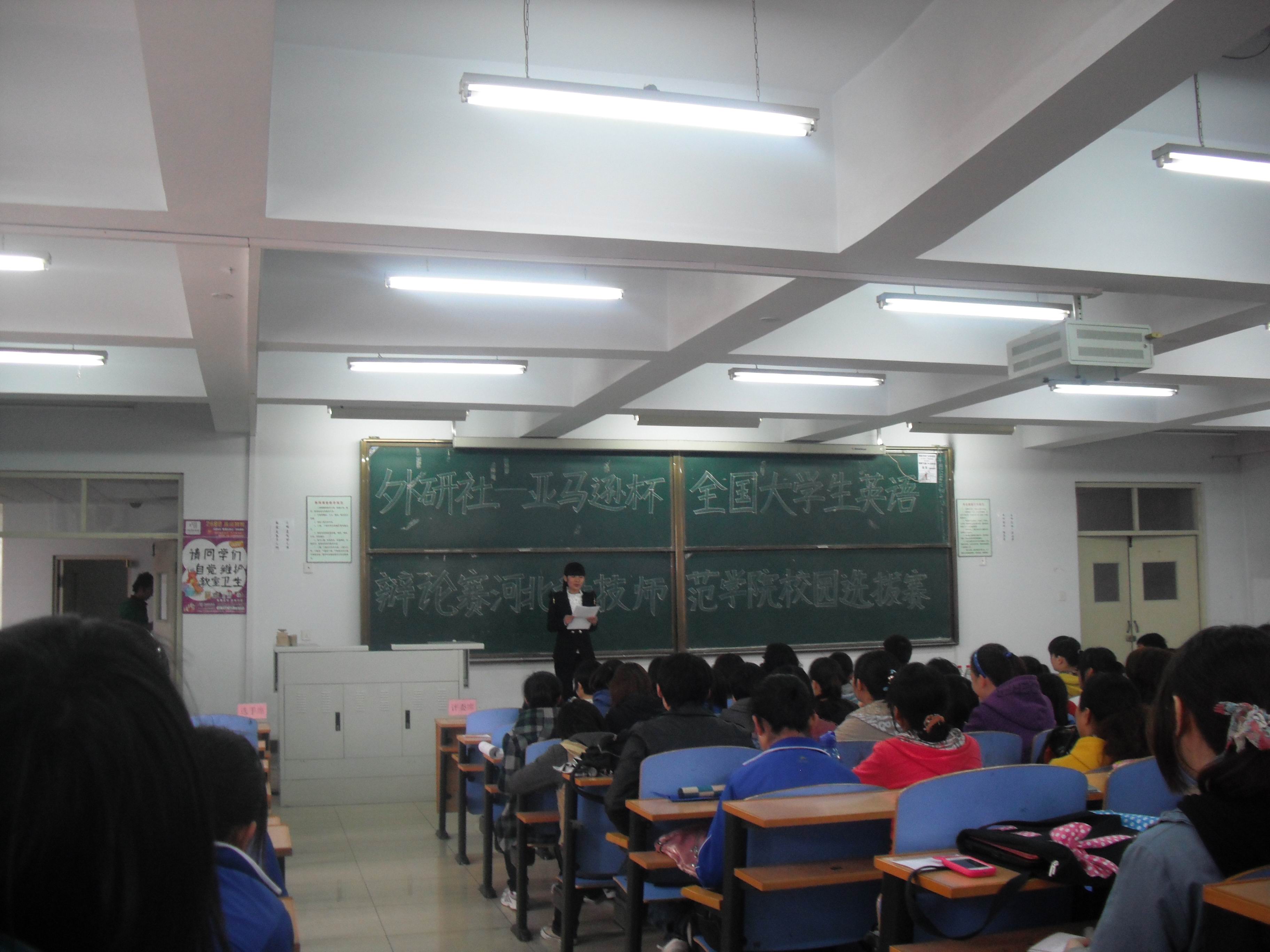 2012年4月21日下午“外研社-亚马逊杯老员工英语辩论赛”乐天使校园选拔赛在开发区综合楼312成功举办。乐天使经理邵丽君、副经理崔海英等7位领导担当评委老师。共有来自各个专业的14个小组参加了此次选拔赛。在比赛中,选手们以“This house believe that we should impose a prohibitive tax on car ownership (i.e. making car ownership very expensive)”为辩题展开辩论。参赛选手以清晰的发音,自然的表达,娴熟的口语和自信的微笑向各位评委及观众展现出各自最优秀的一面。辩论过程则尤为激烈,各组选手慷慨激昂,有条不紊的陈述各自的观点,更有选手声情并茂赢得台下掌声阵阵。最终评选出冠军队1支、亚军队1支、季军队2支;最佳辩手1名、最佳语音奖1名、最佳台风奖1名、最具表现力奖1名。