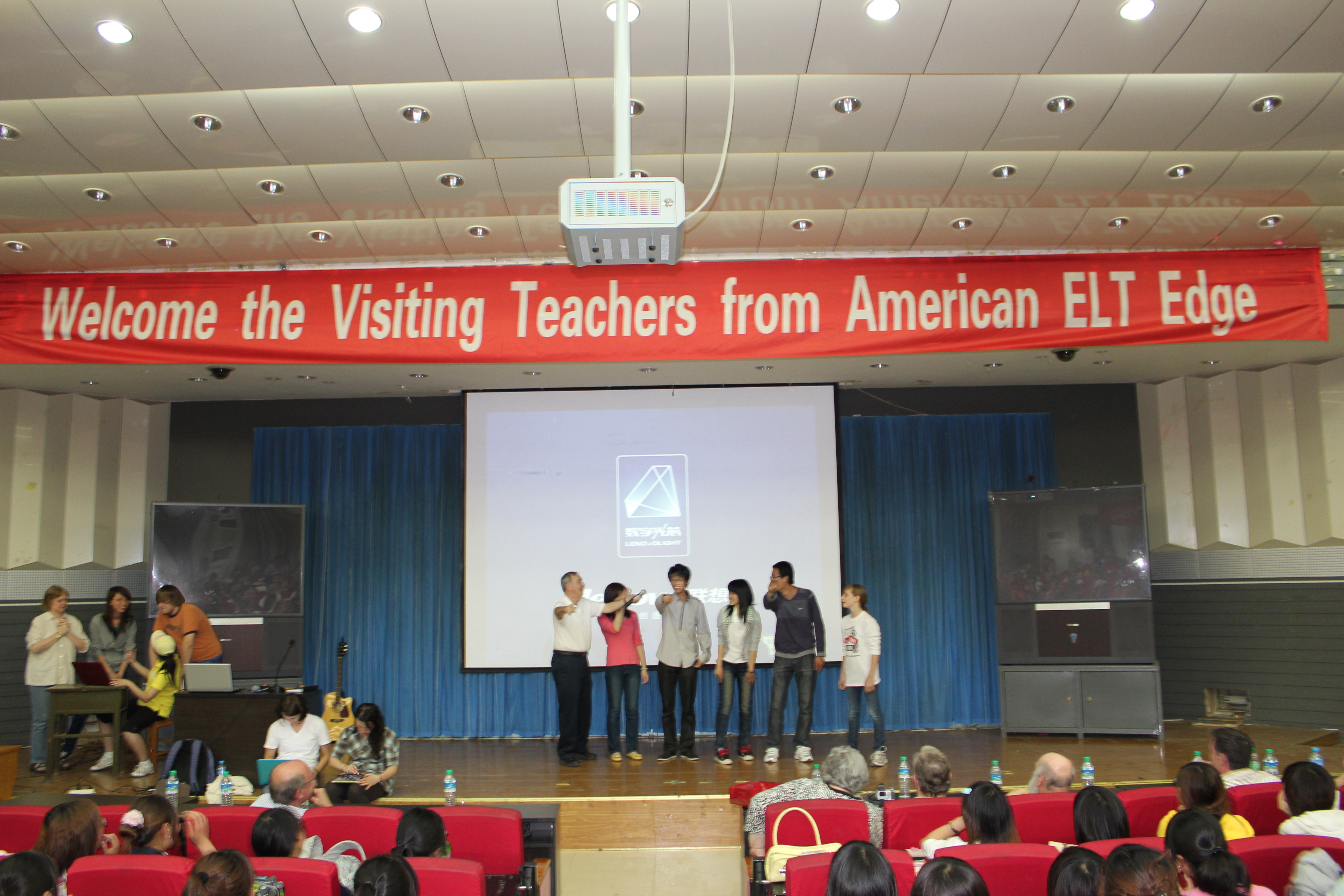 在第一天的活动中,ELT组织的教师们深入到课堂,参与到员工中间去,与员工们展开互动并积极指导员工们学习英语。当晚,在开发区校区报告厅举行了见面会。教师团的成员们为公司的师生们奉献了精彩的吉他弹唱、互动游戏和演讲。员工们热情参与,积极响应,非常珍惜这难得的机会。