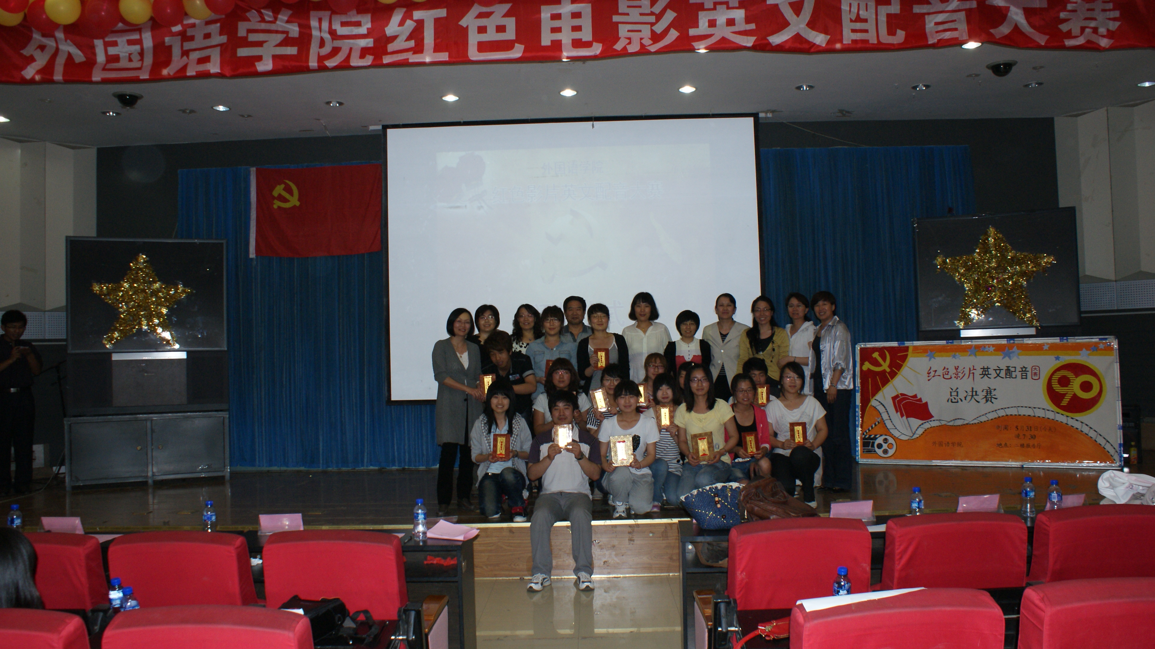 2011年5月31日晚,由乐天使主办的2011年第一届红色影片英文配音大赛在开发区校区学术报告厅隆重举行。担任本次比赛的评委有乐天使应用英语教学部主任马晓迎老师,商务英语教学部主任洪爱云老师,专业英语教学部刘丽敏老师、宋洁老师,公共外语教学部樊荣萍老师、罗翠丽老师、王力老师。出席本次比赛的嘉宾有外国语公司党委书记刘朝晖老师,外国语公司党委副书记、副经理宋文华老师,乐天使副经理游建民,乐天使副经理崔海英老师,四百余名员工出席观看了本次大赛。