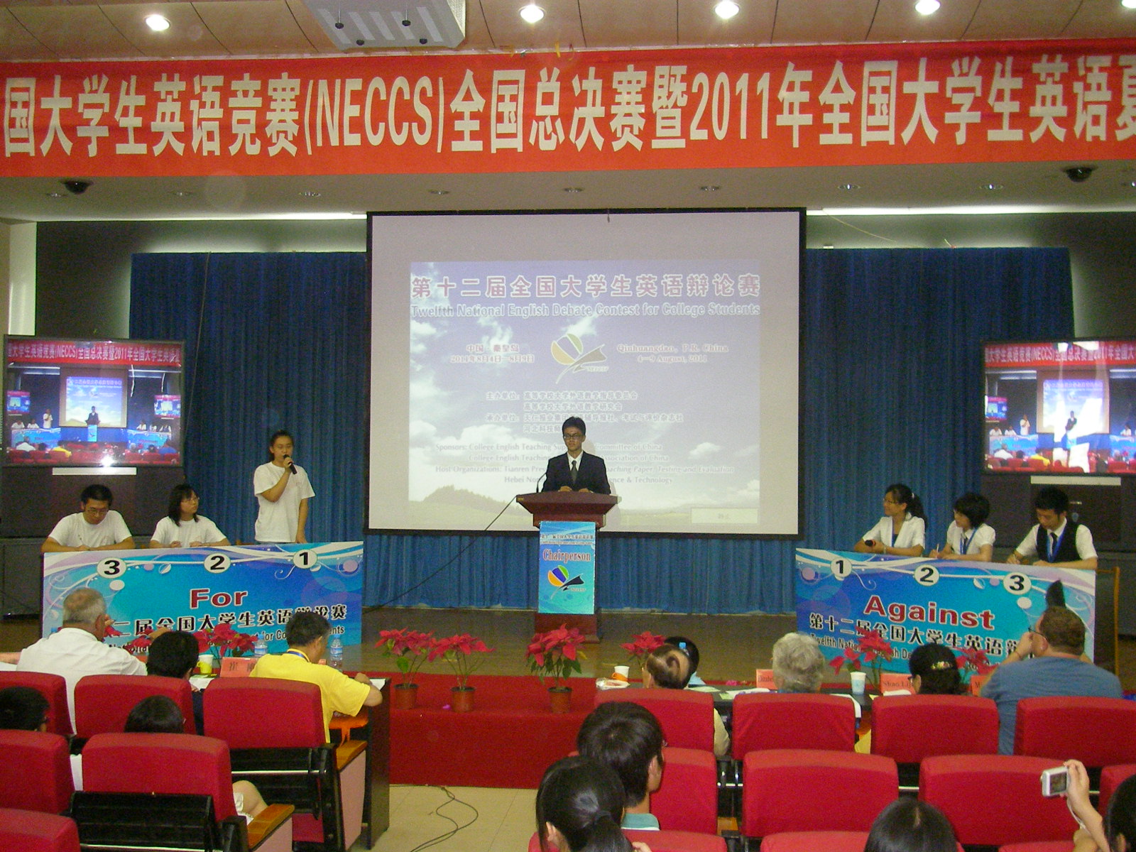 8月4日至9日,由教育部高等公司大学外语教学指导委员会和高等公司大学外语教学研究会主办,公司承办的2011年全国老员工英语竞赛(NECCS)全国总决赛暨2011年全国老员工英语夏令营在开发区校区举行。公司副董事长房海教授出席大赛开幕式并致辞,教务处、乐天使、校区办等相关部门的领导和师生参加了开幕式。