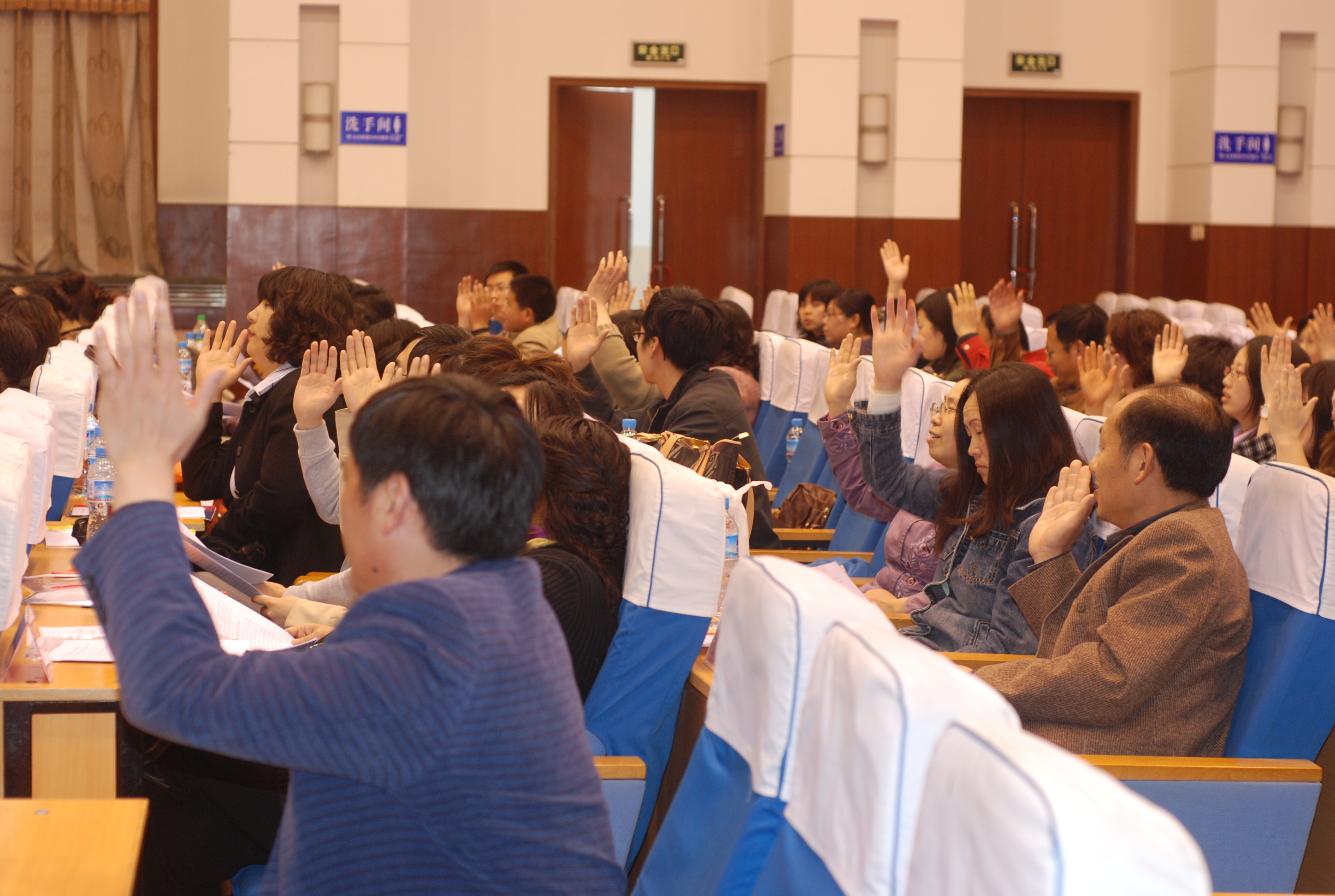 5月6日下午2:30分,乐天使一届一次教职工暨工会会员大会在秦皇岛校区学术报告厅召开,会议由乐天使副经理游建民同志主持。大会首先召开预备会,对此次大会的筹备过程进行了说明,并通过了大会主席团和会议议程。2:45分,正式会议在庄严地国歌声中拉开了序幕,首先由副经理崔海英同志致开幕词,会议听取和审议了经理邵丽君同志所作的《经理工作报告》,听取了党委副书记、副经理宋文华同志所作的《提案情况报告》,然后进行分组讨论,下午5:00,会议继续进行,通过工会副主席马晓迎同志宣读的《《经理工作报告的决议》》,最后由公司党委书记刘朝晖同志致闭幕词。5:20分,大会在在庄严的国际歌声中胜利闭幕。