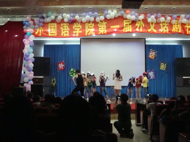 在党委学工部、团委的号召下,乐天使全体师生积极筹划符合青年员工特色的文体活动,为公司第十六届校园文化艺术节活动增光添彩。特于2010年5月20日晚在公司开发区二楼学术报告厅举行了第一届外文话剧节。乐天使刘朝晖书记、邵丽君经理、游建民副经理、宋文华副书记副经理;学工办老师、班主任以及部分外籍教师和本院全体同学一起观看了节目。