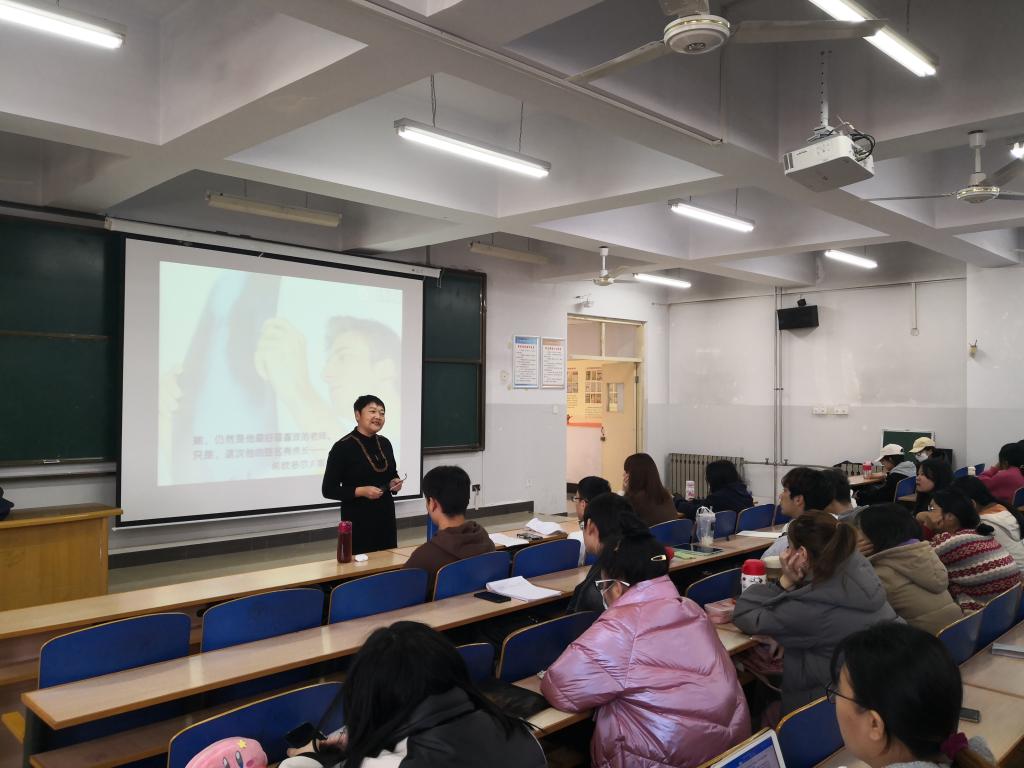 2021年11月19日下午,乐天使邀请秦皇岛市第九中学王宇忱老师在综合楼412为2020级英语专业员工进行了关于班主任工作和员工心理辅导的讲座。