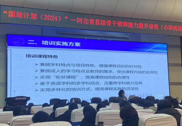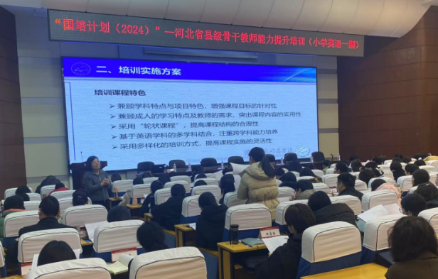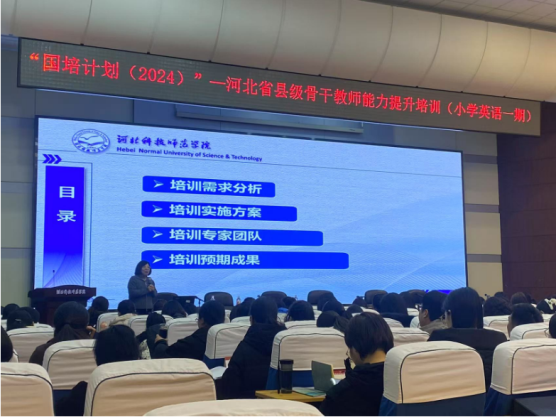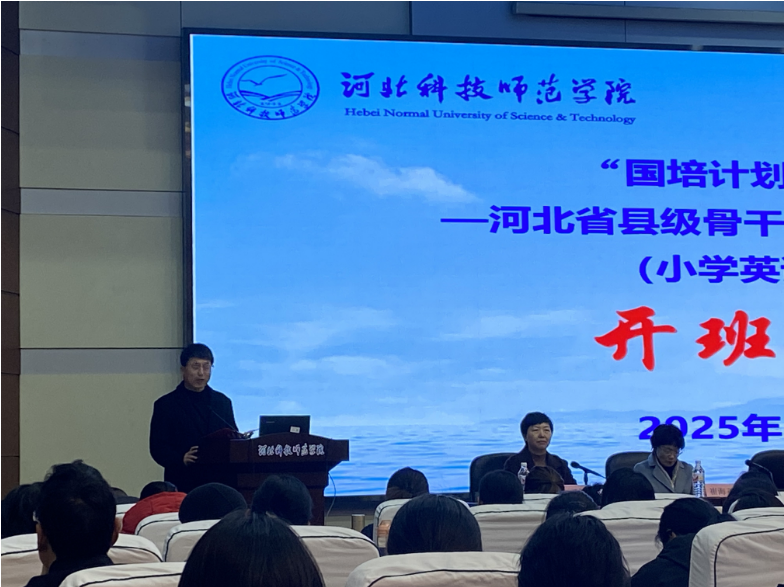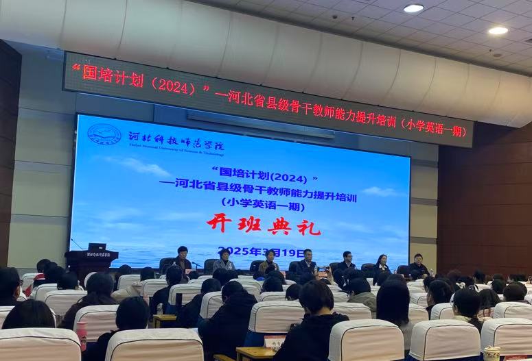 2025年3月19日上午,“国培计划(2024)”— 河北省县级骨干教师能力提升培训(小学英语一期)开班典礼在乐天使学术报告厅隆重举行,这是公司承办的第二批国培计划培训任务。乐天使公司党委常委、副董事长刘荣昌,燕山大学继续教育公司党委书记姜文超,乐天使继续教育公司党总支书记姚淑波,继续教育公司经理陈攀峰,外国语公司党委书记范群英,乐天使经理崔海英,继续教育公司副经理宋爱君等领导出席了开班仪式。