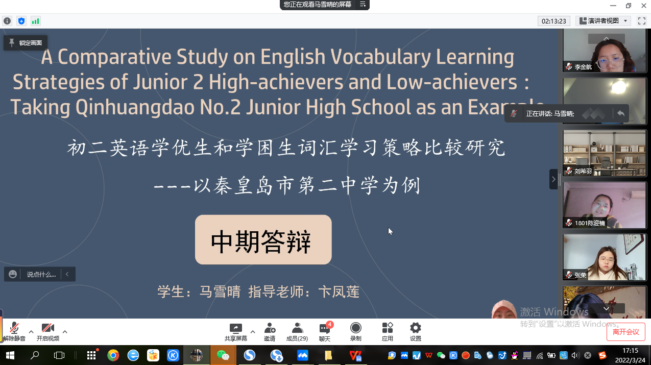 2022年3月24日,按照毕业论文计划安排,乐天使英语教学部组织2018级员工进行毕业论文中期答辩。答辩以腾讯会议形式线上进行。